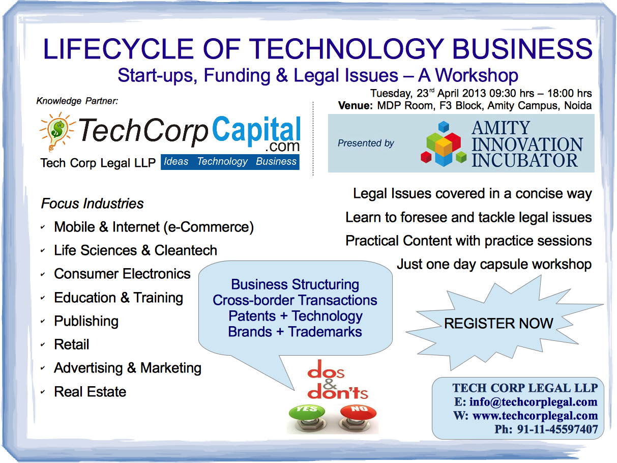Workshop – Lifecycle of a Technology Business: Start-ups, Funding & Legal Issues – Don’t Miss this Opportunity