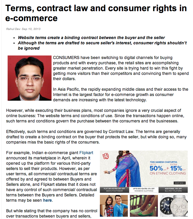 Internet Law: Website Terms, Contract Law and Consumer Rights – Flipkart vs eBay vs Amazon